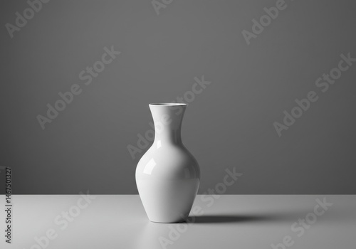 Simple elegance: Smooth white vase against muted grey backdrop highlighting form