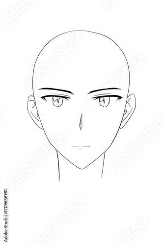 Simple Facial Sketch: A clean, minimal line drawing of a human face, capturing the essence of facial features, perfect for design or educational use.