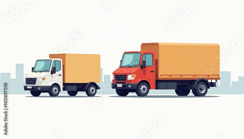 Simple flat design vector of van truck and lorry icons with white background, transport, symbol, vehicle