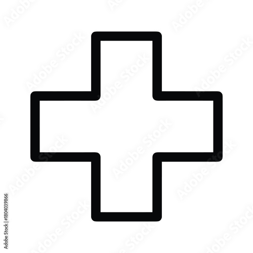 Simple geometric cross symbol with thick black outline on white background