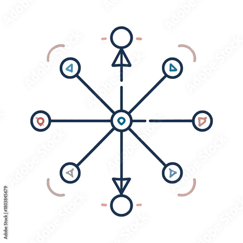 Simple Geometric Design with Radiating Lines Circles and Triangles against a White Background