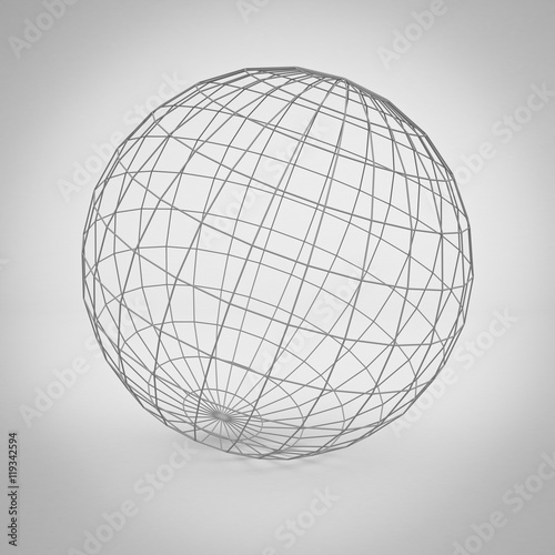 Simple globe earth wireframe over gray background with shadow 3D rendering