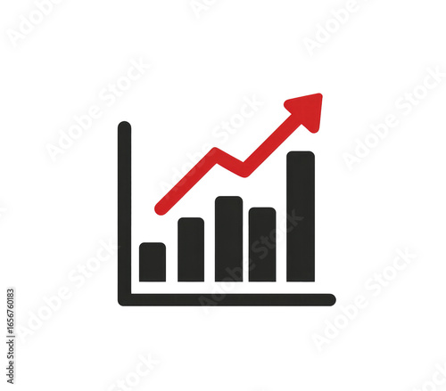 Simple graphic of a rising bar graph. A red upward-pointing arrow indicates growth or increase over time