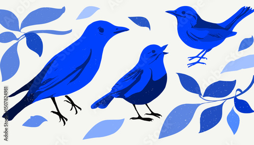 Simple Hand Drawn Linocut Style Vector Illustration � Natural Spring Birds Print, Poster, and Logo Design Template