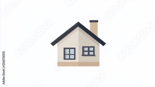 Simple house icon, beige walls, black roof, two windows, chimney.