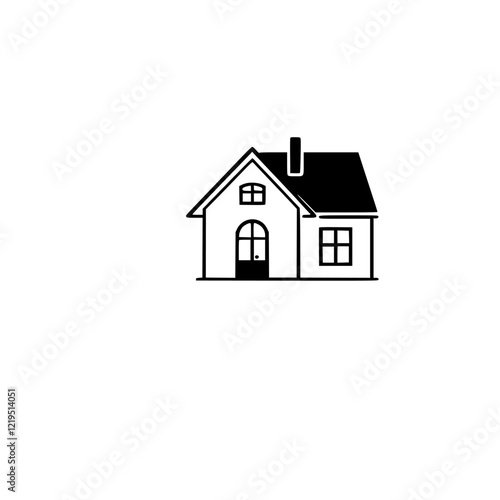 Simple House Illustration: Black and White House Icon, Minimalist Home Design, Real Estate Symbol