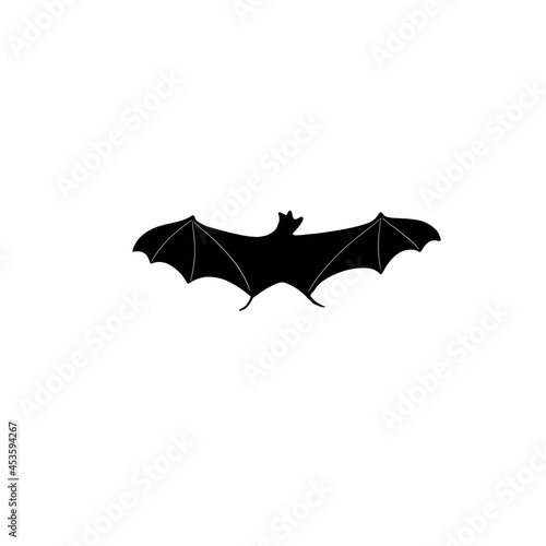 Simple illustration of a silhouette of a flying bat, halloween celebration, black lines on a white background