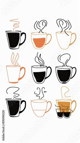 simple illustration of coffee mugs, which are symbols of art Dynamic on a clean white background.