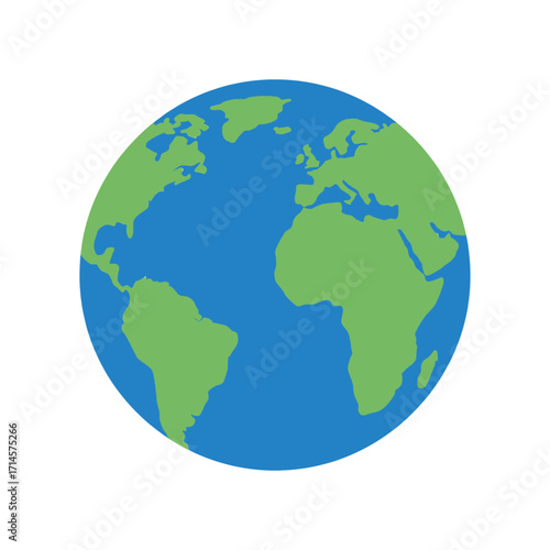 Simple illustration of planet Earth showing continents and oceans in a flat design.