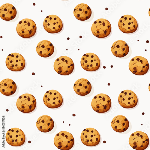 simple illustration on white background; isolated chocolate chip cookies; repeating pattern