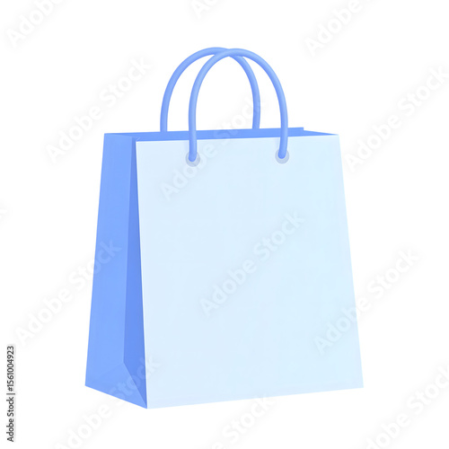 Simple light blue paper shopping bag with handles isolated on transparent background