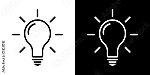 Simple light bulb outline icon isolated on white and black background illustration..