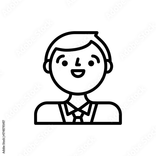 Simple Line Art Avatar of a Smiling Person with Short Hair and a Shirt and Tie Outfit on a Transparent Background