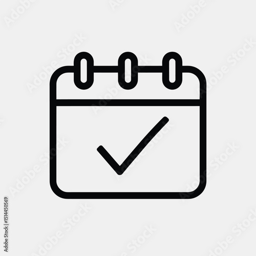 Simple Line Art Calendar with Checkmark Representing Task Completion and Business Event Confirmation