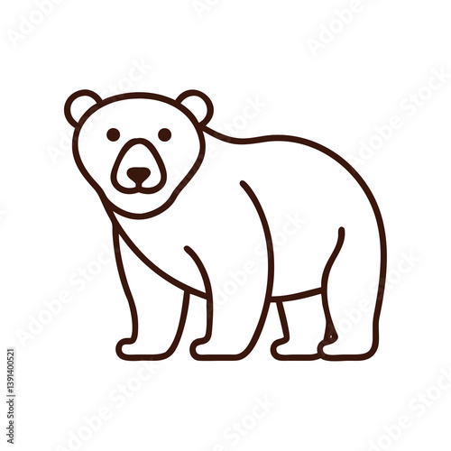 Simple Line Art Drawing Of A Bear Standing On A White Background