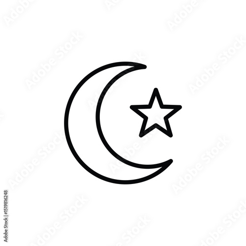Simple line art icon of a crescent moon and star, a common symbol in Islam.