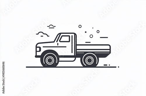 Simple line art illustration of a pickup truck moving