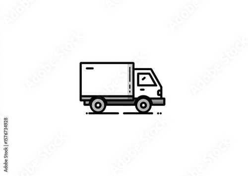 Simple line art illustration of a white delivery truck, side profile, moving on a flat surface