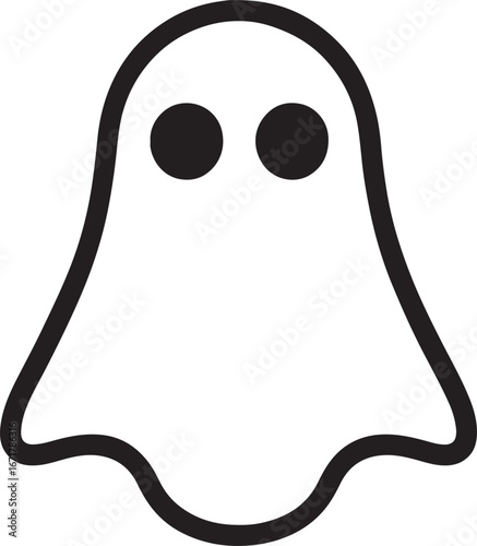 Simple line drawing of a friendly ghost with big black eyes