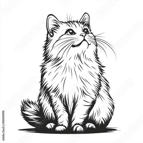 Simple line drawing of a Siberian cat full body on a white background,