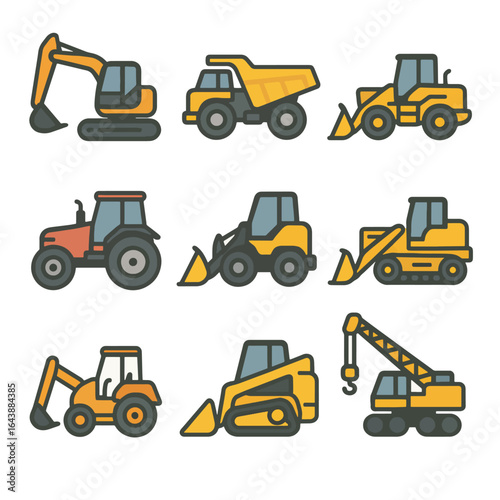 Simple Line Heavy Equipment Icon Set for Construction and Agriculture
