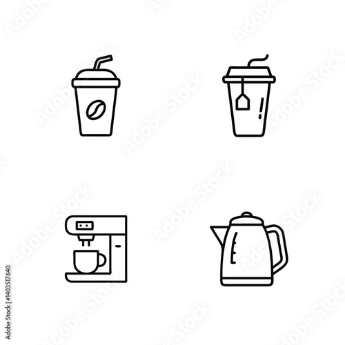 Simple Line Icons of Coffee, Tea, and Kitchen Appliances