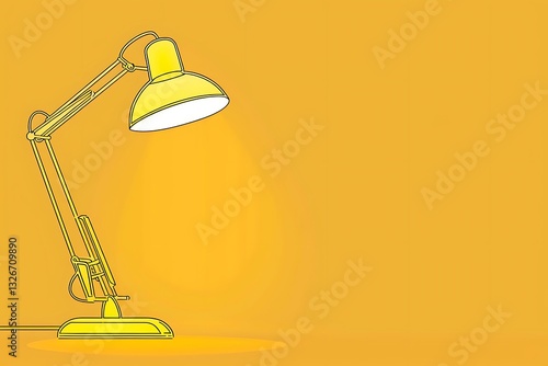 Simple linear icon of a sophisticated desk lamp in warm yellow, elegant lines, and modern style.