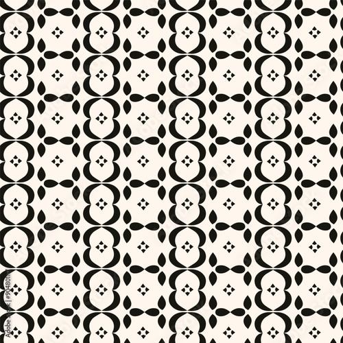 Simple minimalist floral pattern. Minimal seamless texture with small flower shapes. Abstract black and white geometric background. For print, package