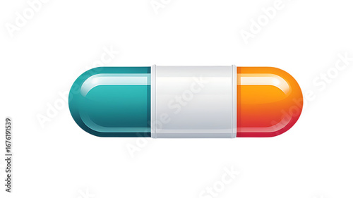 Simple minimalist pill capsule icon with teal orange and white design for medical and pharmaceutical use