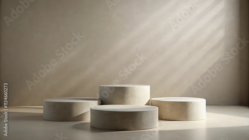 Simple Minimalist Podium Arrangement with Natural Light and Shadows on a Neutral Background