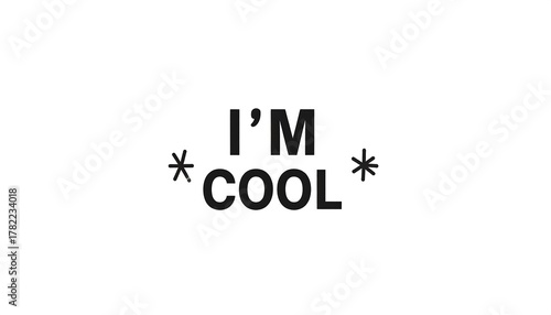 Simple monochrome graphic featuring the statement "I'M COOL" in bold, sans-serif font. Asterisks flank the word "COOL". White background