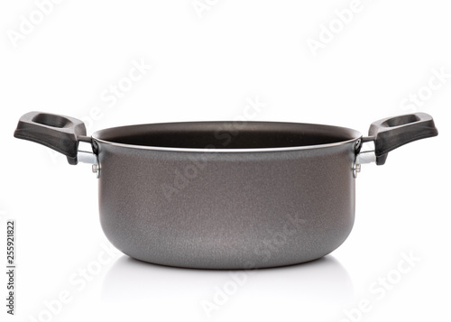 Simple new empty Non-stick grey Cooking Pot or Saucepan, isolated on white background.