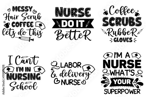 Simple Nurse Typographic Emblems, Hand Lettering Pack Vector Illustration for Book Cover, Magazine, Advertising