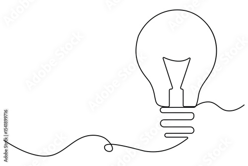 Simple one line art drawing of light bulb symbol with clean modern vector outline isolated on white background