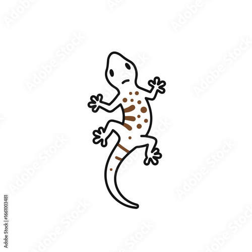 Simple outline drawing of a gecko, with clean lines and a minimalist style.