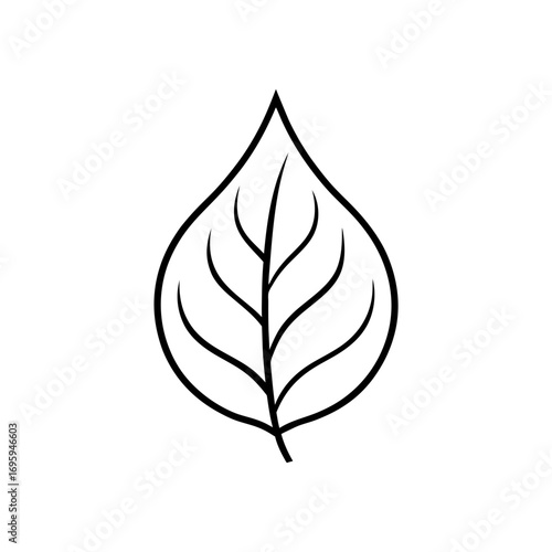 Simple outline drawing of a single leaf on transparent background