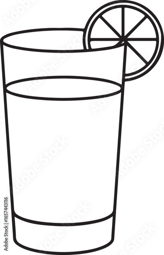 Simple outline drawing of a tall glass filled with a refreshing beverage and a citrus slice garnish