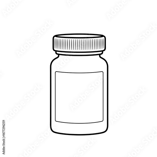 Simple outline illustration of a pill bottle with a blank label, perfect for medical or health-related designs