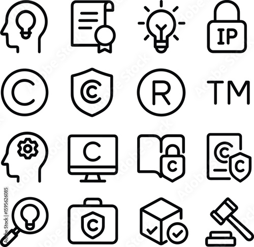 Simple Outline Intellectual Property Protection Icon Set for Legal Business