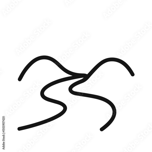 Simple Outline Wavy River Between Hills Landscape Graphic Element
