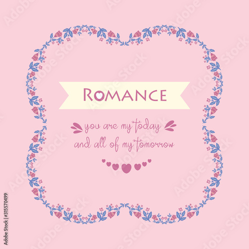 Simple pattern of romance greeting card, with leaf and pink wreath seamless frame. Vector