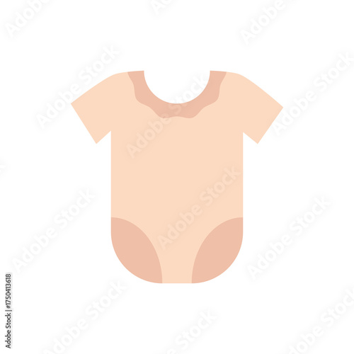 Simple Peach Colored Baby Bodysuit with Short Sleeves and Ruffled Neckline on Transparent Background