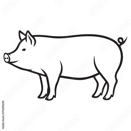 Simple pig line art illustration. Farm animal outline for coloring books, logos, or icons. Black and white vector drawing of a cute domestic hog