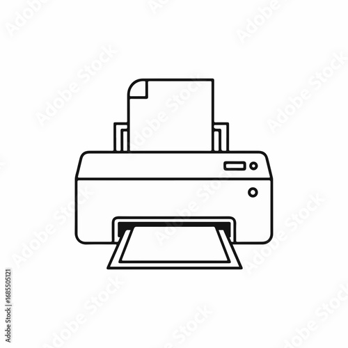 Simple printer icon, printing document illustration. Office equipment image shows home printer device with paper output. Simple printer icon for website design or app interface.