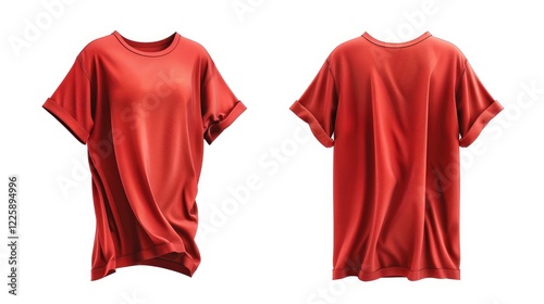 Simple red t-shirt front and back side view isolated on white background, blank apparel mockup, casual cotton fabric, professional fashion photography setup.