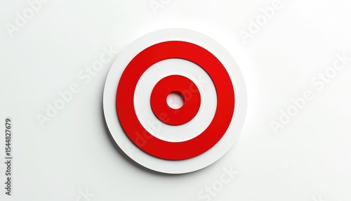 Simple red white target center white background. Minimalist geometric design focuses aim goal achievement success. Abstract graphic design ideal for business marketing.