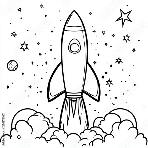 Simple Rocket Ship Blast Off Fun Coloring Page for Kids