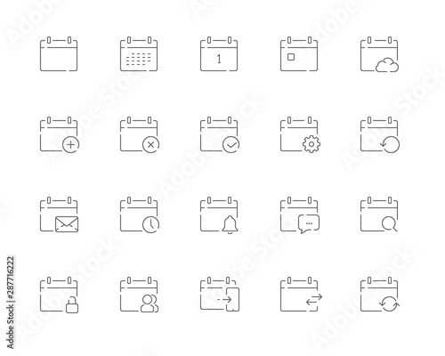 Simple set of Calendar related vector line web icons. Contains such Icons as Calendar, Today, Mobile sync, Private, Family and more. Editable Stroke. 48x48 Pixel Perfect.