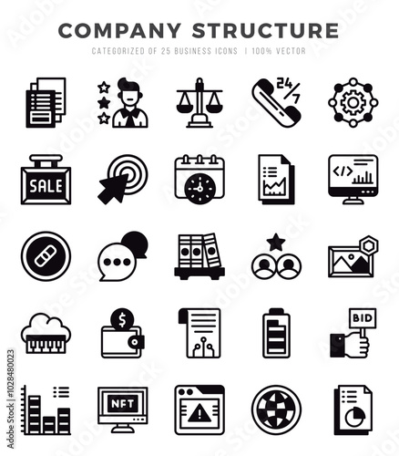 Simple Set of Company Structure Related Vector Lineal Filled Icons.