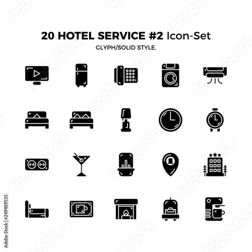 Simple Set of Hotel Service Related Vector Icons. Contains such Icons as Bedroom, Laundry, Air Conditioning and more. Editable Stroke. Pixel Perfect.